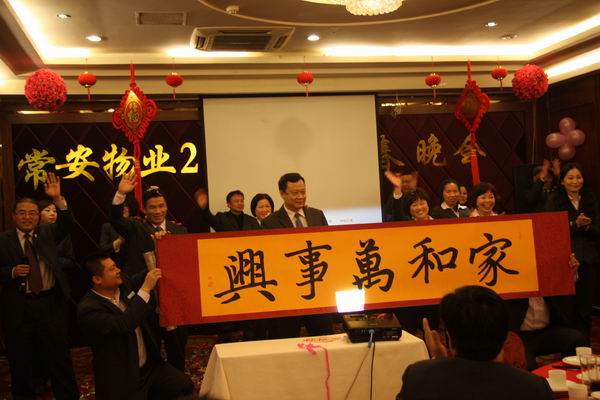 簡訊:深圳市常安物業(yè)服務(wù)有限公司于2011年1月23日下午在富邦酒店舉行《常安物業(yè)2010年度總結(jié)大會》,參加會議的主要人員有副總經(jīng)理-黃國義、副總經(jīng)理-蔡愛花、常務(wù)副總經(jīng)理-林源朋、董事長-張武。會議主要對公司在2010年度的各項工作進(jìn)行了匯報與總結(jié),會議指出常安物業(yè)將在2011年度加強(qiáng)精細(xì)化管理、加強(qiáng)績效的施行力度、加強(qiáng)培訓(xùn)力度、營造學(xué)習(xí)型企業(yè)、提高業(yè)務(wù)服務(wù)質(zhì)量。在發(fā)展業(yè)務(wù)方面公司將以2011年度制定的發(fā)展戰(zhàn)略為基礎(chǔ)拓寬思路、大膽創(chuàng)新、通過制定 合理機(jī)制達(dá)到持續(xù)改進(jìn)服務(wù)水平的目的。整場的會議內(nèi)容極大的鼓舞在場的每一位員工,在會議的最后公司頒發(fā)了2010年度優(yōu)秀員工獎30人、優(yōu)秀服務(wù)中心主任1人以及服務(wù)中心特別獎等。會議會議結(jié)束后,常安物業(yè)舉行了《2011年聯(lián)歡晚會》。整個晚會空前熱烈,大家在一起歡聲笑語、載歌載舞、把整場的氣氛推向了高潮。