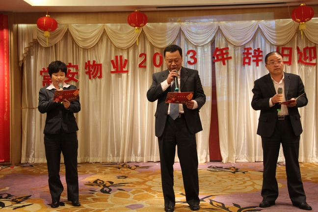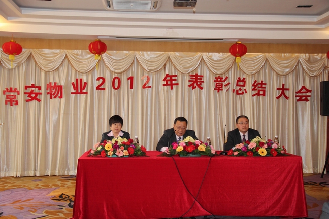 2013年1月25日常安物業(yè)召開了2012年度表彰總結(jié)大會及2013年辭舊迎新晚會。參加會議的主要人員有副總經(jīng)理-黃國義、副總經(jīng)理-蔡愛花、董事長-張武。會議主要對公司在2012年度的各項工作進行了匯報與總結(jié),并制定了2013年的發(fā)展戰(zhàn)略。會議中對2012年度優(yōu)秀員工及先進服務(wù)中心及主任進行了表彰,并與各服務(wù)中心簽訂了2013年目標管理責任書。