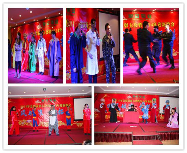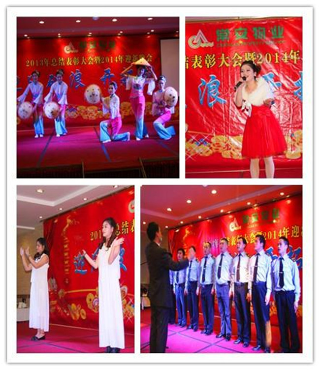 常安物業(yè)年終總結(jié)表彰大會(huì)暨迎新晚會(huì)于2014年1月17日在學(xué)府路順德佬圓滿結(jié)束。整個(gè)活動(dòng)分為三個(gè)環(huán)節(jié)。1、2013年終總結(jié)大會(huì)。張總在會(huì)議上對(duì)公司一年主要工作、取得的成績做了通報(bào),對(duì)2013年表現(xiàn)優(yōu)秀的服務(wù)中心、個(gè)人給予表彰。2、迎新晚會(huì)。各部門、服務(wù)中心的精彩表演;搞笑、歡樂的游戲;激動(dòng)人心的抽獎(jiǎng)將整晚的活動(dòng)拉向高潮。3、歡樂晚宴。我們共同舉杯,開懷暢飲,慶祝2013年的輝煌,迎接新一輪的挑戰(zhàn)。