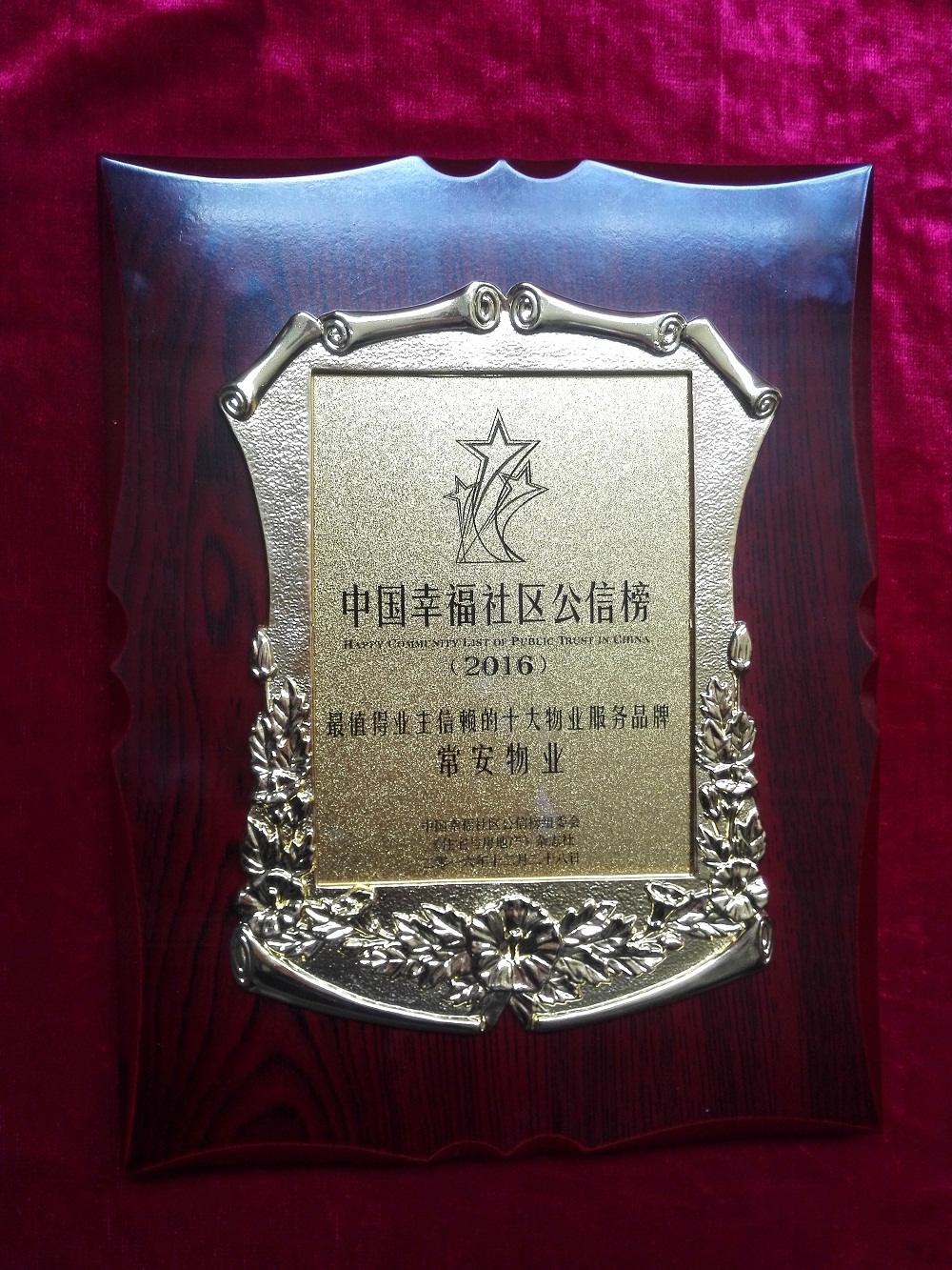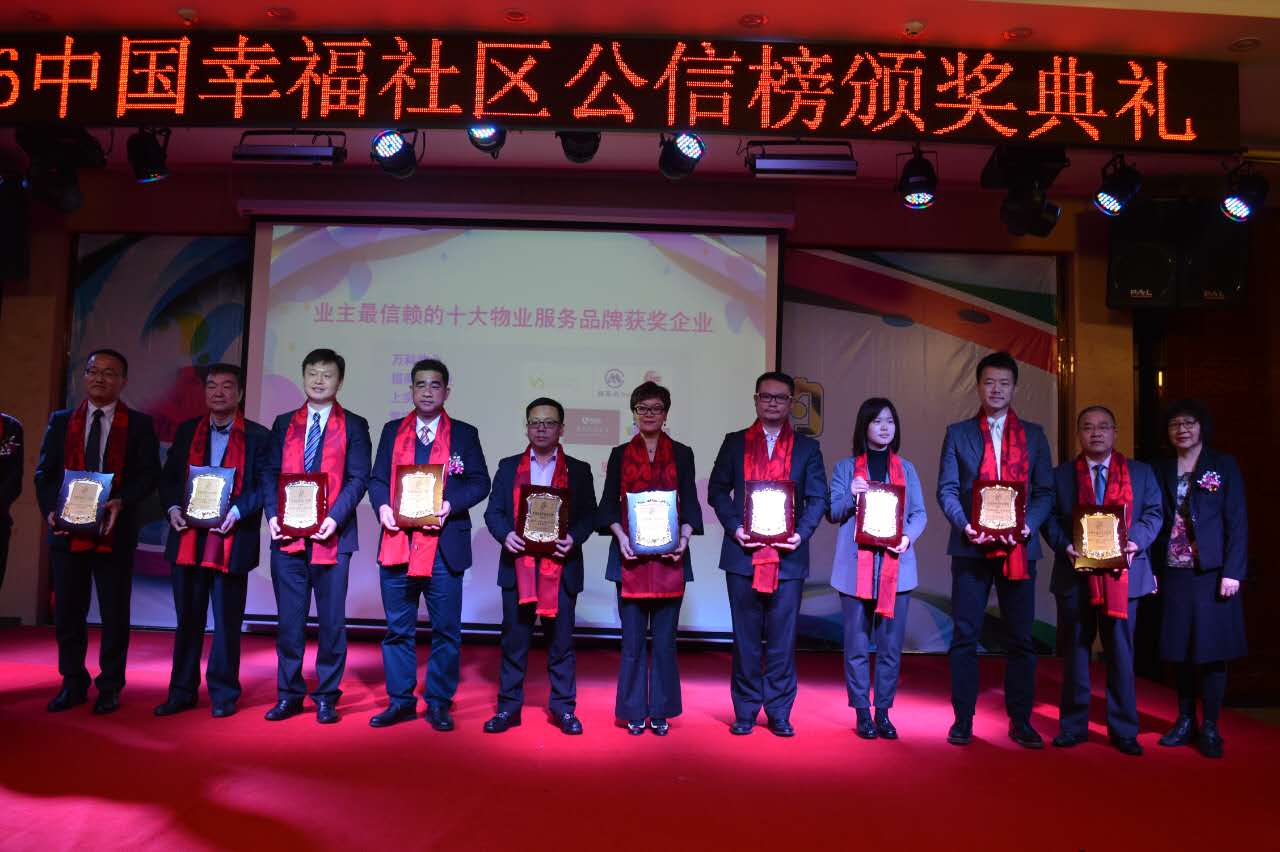由《住宅與房地產(chǎn)》雜志主辦,物業(yè)管理微信平臺(tái)協(xié)辦的“2016中國幸福社區(qū)公信榜頒獎(jiǎng)典禮”,歷經(jīng)15天逾百萬人積極投票,于2016年12月28日分別公布了7個(gè)獎(jiǎng)項(xiàng)的獲獎(jiǎng)?wù)呒邦C發(fā)榮譽(yù)獎(jiǎng)牌。
