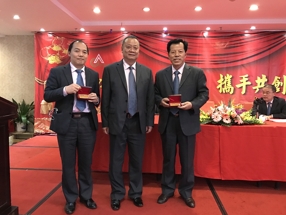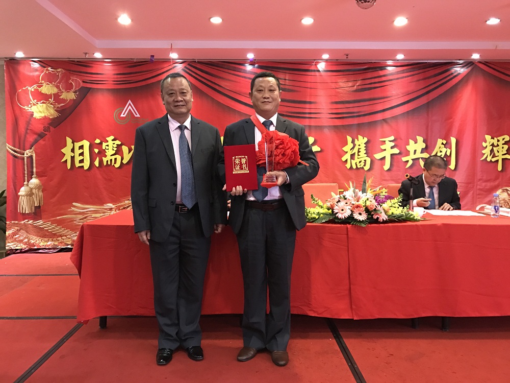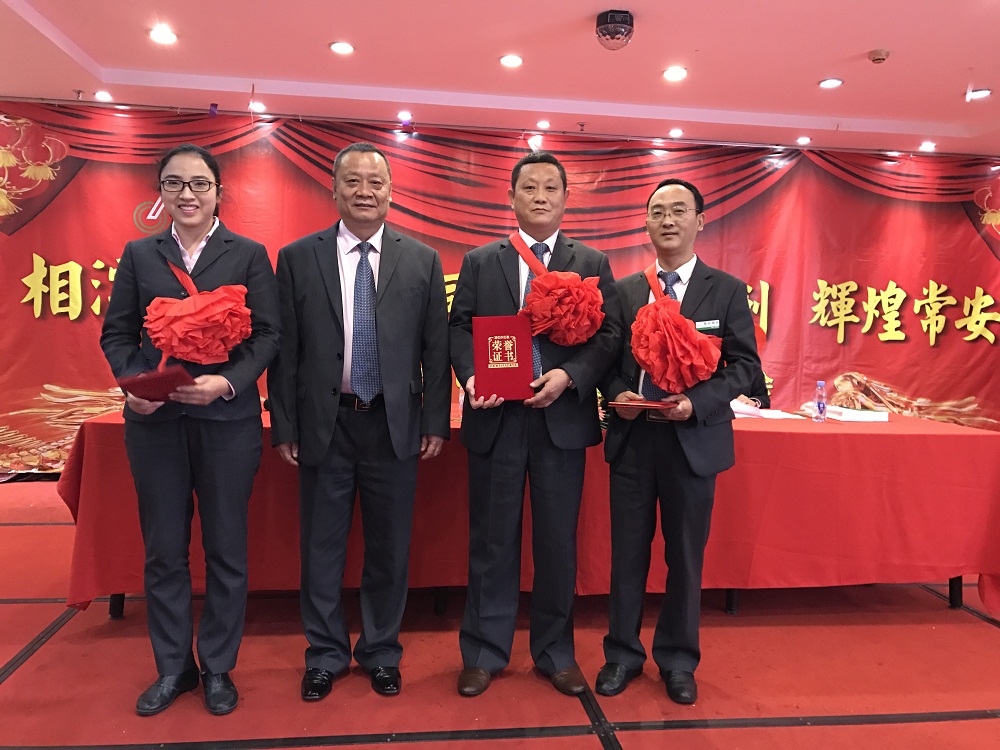 3、張總代表公司領(lǐng)導(dǎo)班子給20年老員工(何國兵總經(jīng)理助理和羅韶坤主任)頒發(fā)“二十年長期服務(wù)獎”金牌,表彰老員工20年以來對公司的付出,鼓勵公司所有員工再接再厲。