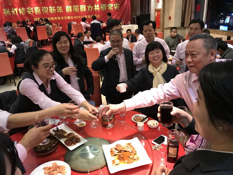 5、在場員工與老員工共進(jìn)豐富晚宴,晚宴中,公司領(lǐng)導(dǎo)班子端起酒杯到每一桌送去祝福,并向退休老員工發(fā)放慰問津貼。