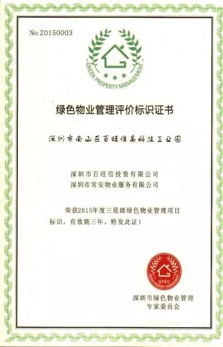 依據(jù)2011 年深圳出臺(tái)的首部《深圳市綠色物業(yè)管理導(dǎo)則(試行)》和 2013 年出臺(tái)的《深圳市綠色物業(yè)管理項(xiàng)目評(píng)價(jià)辦法和細(xì)則(試行)》,常安物業(yè)積極響應(yīng)并開展綠色物業(yè)管理工作,2016 年至今,共有四個(gè)項(xiàng)目榮獲了深圳市政府部門頒發(fā)的綠色物業(yè)管理項(xiàng)目證書,其中崇文花園還被深圳市政府部門列為深圳市綠色物業(yè)管理項(xiàng)目參觀基地,2019年出任廣東省綠色供應(yīng)鏈協(xié)會(huì)綠色物業(yè)管理專業(yè)委員會(huì)副主任委員單位。色物業(yè)管理