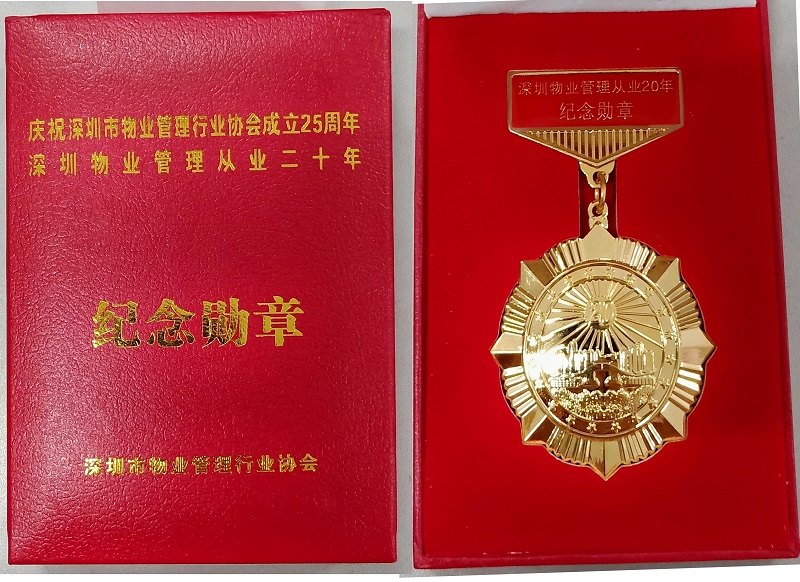 在慶祝深圳市物業(yè)管理協(xié)會成立25周年之際,為表彰長期以來奮斗在物業(yè)管理行業(yè)的管理人員群體,深物協(xié)對全市841名從業(yè)達到20周年的管理人員授予“深圳市物業(yè)管理從業(yè)20周年紀念勛章”,我司的何國兵、廖育紅、張輝、陳景東、羅韶坤、閔威、李伍英、陳煥方等8名同志榮獲此次表彰。