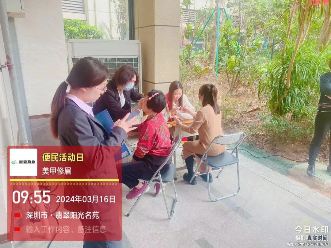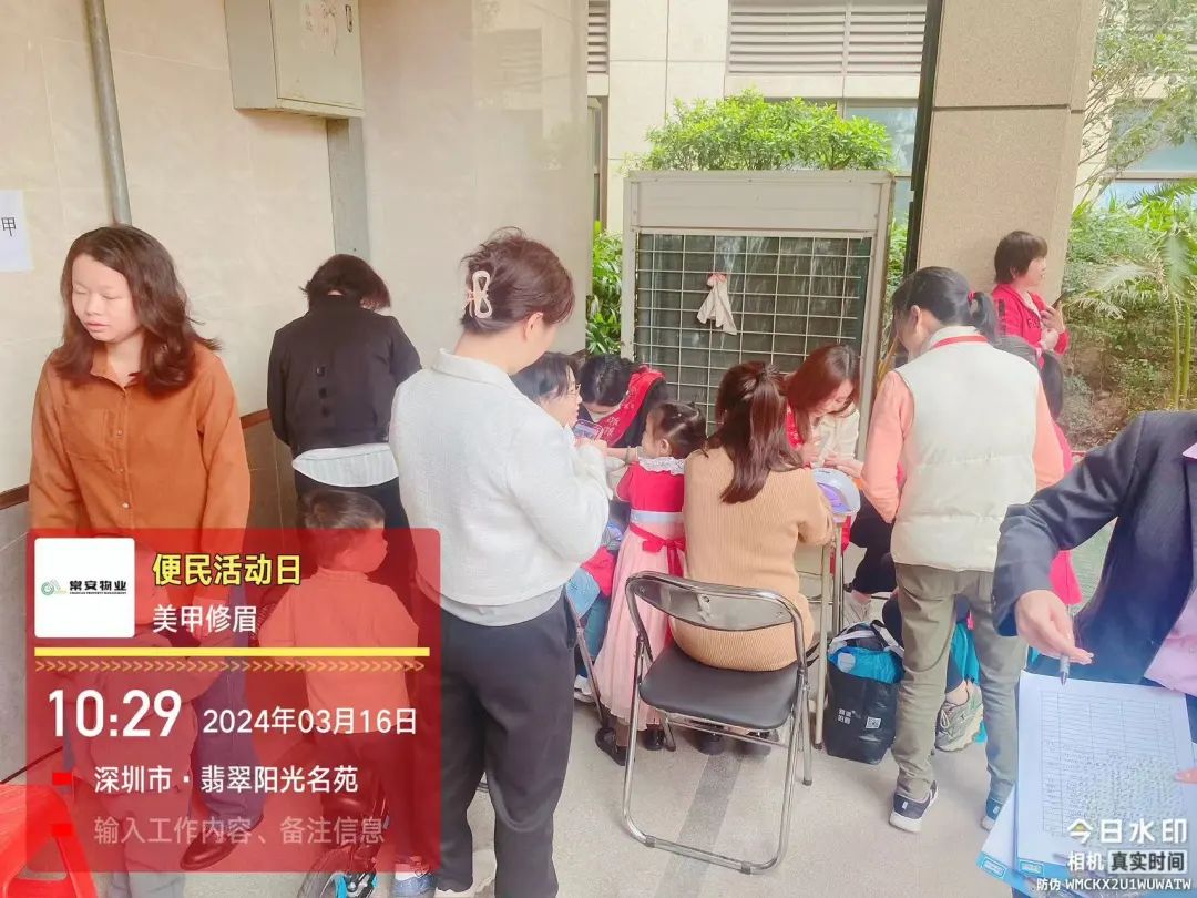 關(guān)注每一個細(xì)節(jié),為您的生活添彩!為方便本小區(qū)業(yè)主和住戶的居家生活,提升業(yè)主滿意度,提倡助人為樂,創(chuàng)建和諧小區(qū)。常安物業(yè)翡翠陽光名苑小區(qū)便民活動,在2024年3月16日(周六)上午09:30-12:30如期舉行:服務(wù)項目包括送水票、清洗服務(wù)、義剪、義診、美甲、修眉,獲得業(yè)主一致好評。