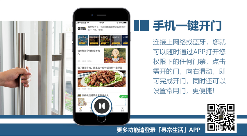 連接上網(wǎng)絡(luò)或藍(lán)牙,您就可以隨時(shí)通過(guò)APP打開(kāi)您權(quán)限下的任何門(mén)禁,點(diǎn)擊需開(kāi)的門(mén),向右滑動(dòng),即可完成開(kāi)門(mén),同時(shí)還可以設(shè)置常用門(mén),更便捷!